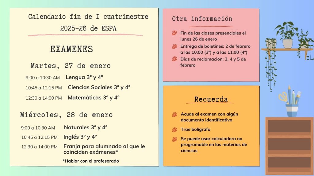 El examen de la convocatoria de Noviembre de 2025 tendrá lugar el día 28 de noviembre de 2025 a las 10:30 horas en nuestro centro.